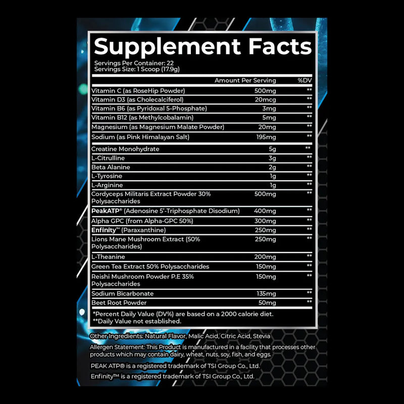 21 clinically-dosed ingredients in one scoop. Energy, focus, hydration, recovery. Everything your body needs without the crash.